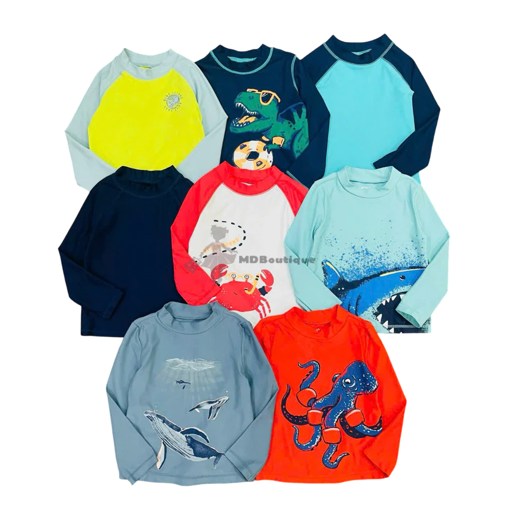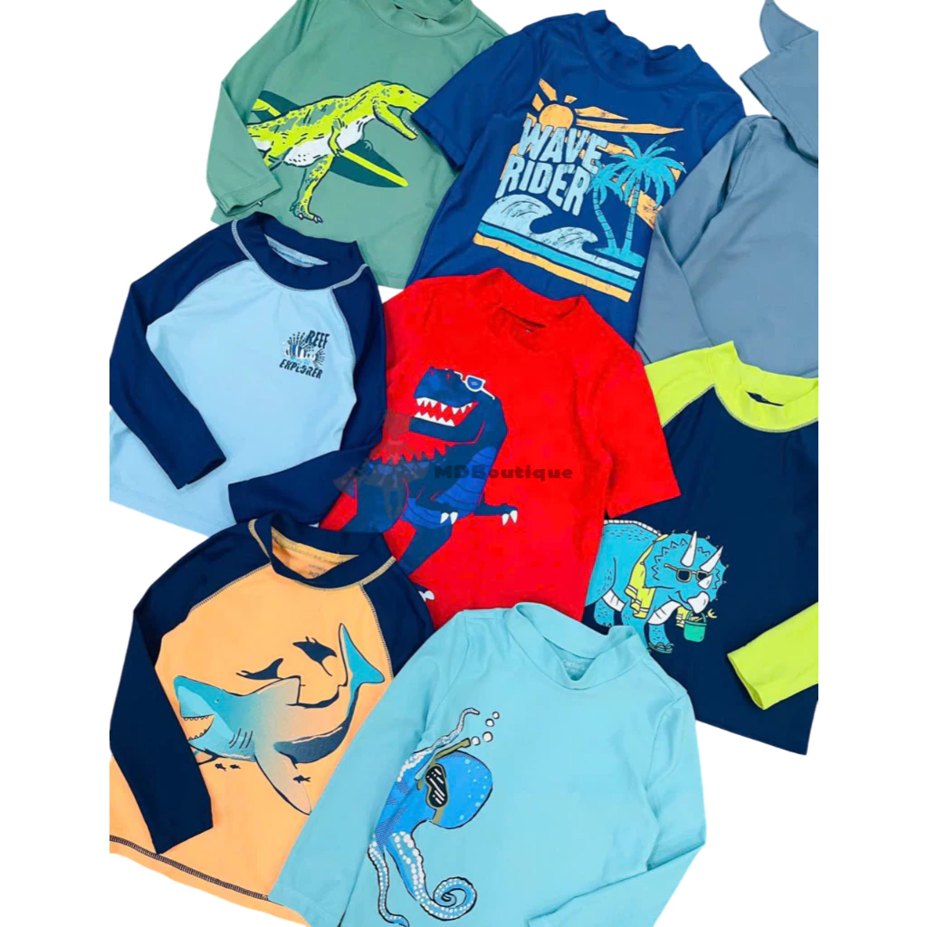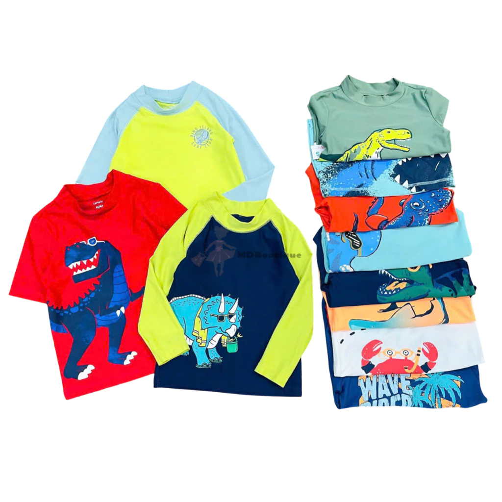 [Bán sỉ không bán lẻ], set 2 áo bơi bé trai cho mùa hè năng động, Size 12m-2y (size 2y nhiều hơn). Hiệu Carter, made in Cambodia, hàng xuất dư xịn.